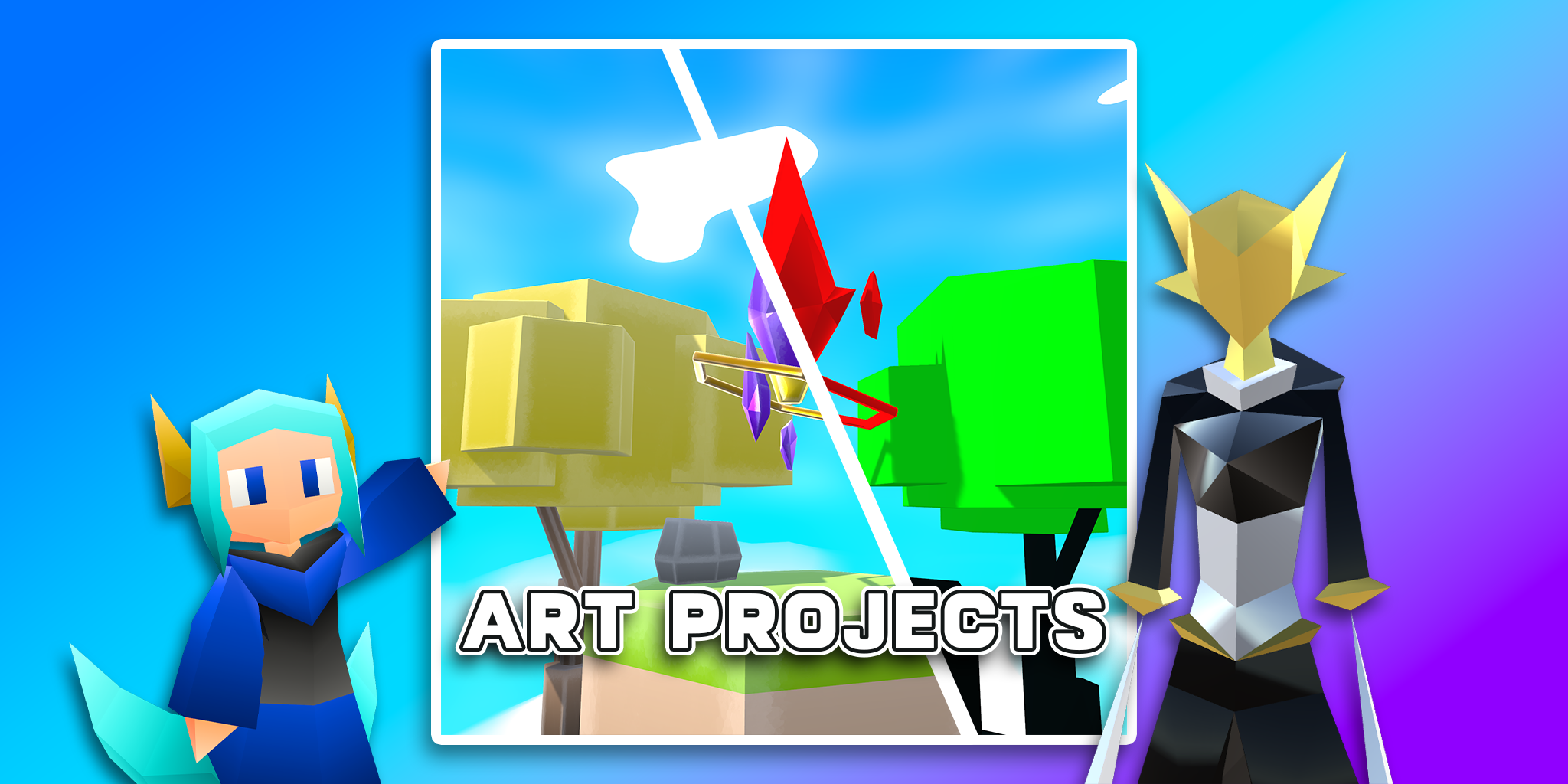 I have a hobby of making and refining very low-poly characters that use simple colors or gradients. The blue kitsune character doesn't have a name yet. Their working title is “Plizard” for Polygonal Wizard (that's what they started as) or simply “little guy.” However, they've become a design I'm quite attached to, essentially becoming my mascot character, and I use them in most of my game projects as the player character. Their colors are a gradient map similar to the Hexagon Islands atlas, so changing their hair, outfit, and tail colors can be done just by offsetting the UVs.